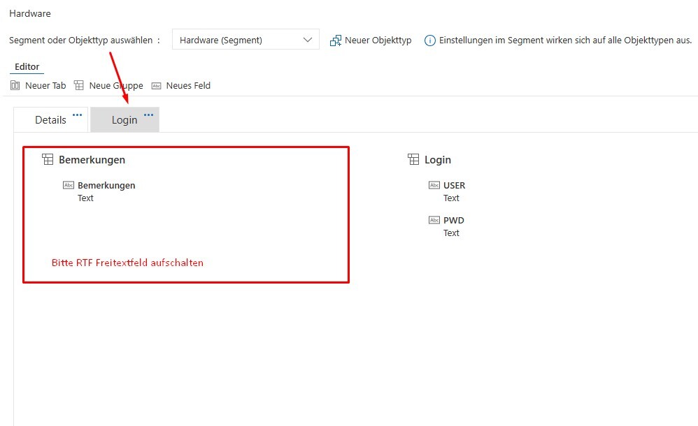 Könnten Sie bitte beim Customizing das RTF Freitextfeld freischalten. Im Moment kann ein Bemerkungsfeld mit einem 1 Zeiler eingefügt werden, was leider nicht viel bringt.