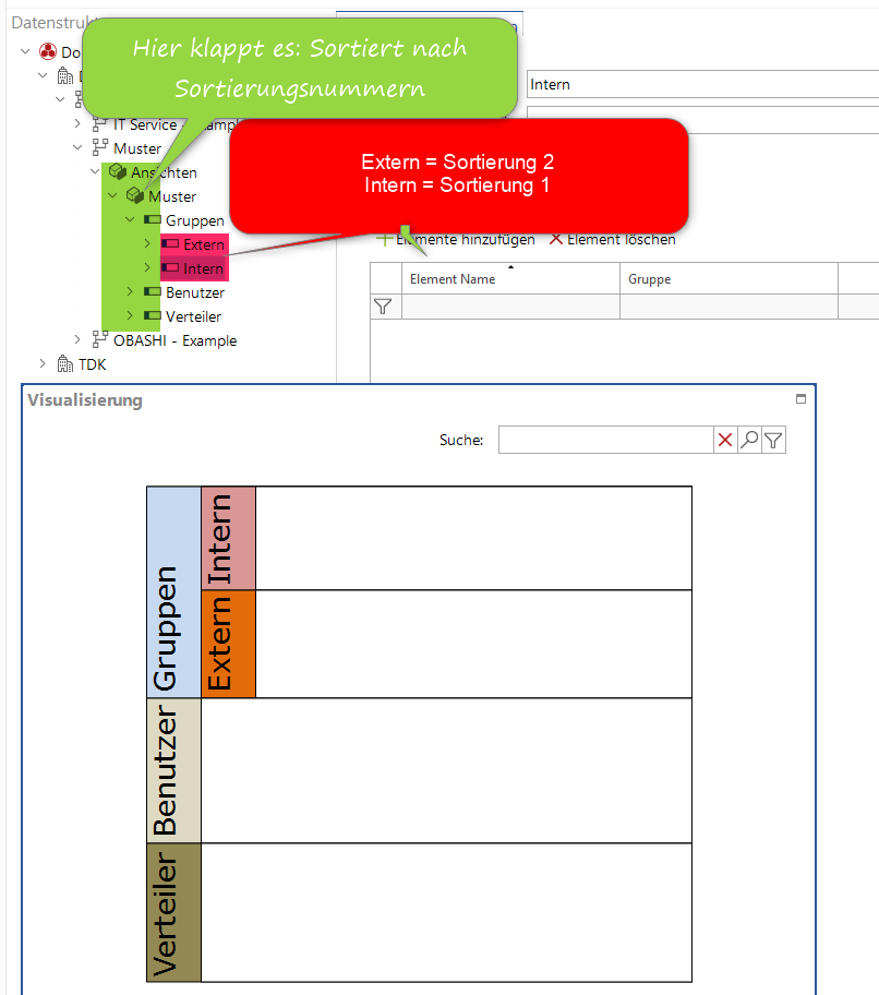 Wenn ich Strukturelemente einfüge und nummeriere ist es nervig, dass links im Baum die alphabetische Sortierung, nicht die Nummerierung der Elemente zuschlägt. Hier müsste im META-Bau nur das Sortierkriterium anstelle NAME auf Sortierungsnummer angepasst werden.