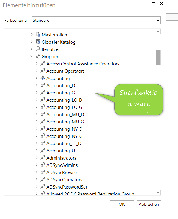 Weiterhin: wenn ich Objekte hinzufüge (z.B. aus dem AD) wäre eine Suche echt hilfreich. Man scrollt sich da teilweise tod :-)