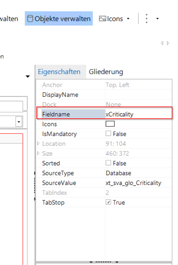 Unter "Objektverwaltung" ist die Bearbeitung einer Maske bzw. eines Felds möglich.
