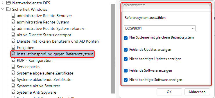 Nur noch einmal nachgefragt: Der bereits existierende Bericht ermöglicht es, alle vorhandenen Systeme gegen ein Referenzsystem zu vergleichen, um so auf Abweichungen im Bereich OS-Aktualisierung und installierte Software zu prüfen.