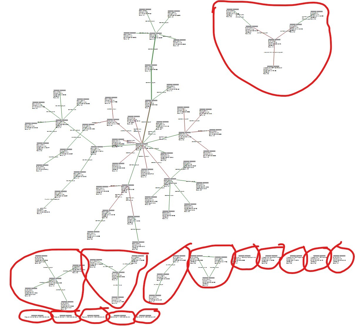 Vorher konnte ich dies im Topologieplan wunderbar abbilden, sodass ein schönes, zusammenhängendes Netz dargestellt wurde. Dies ist nun nicht mehr der Fall. Jetzt habe ich 12 verschiedene kleine Netze und ein großes Netz, die nicht mehr miteinander verbunden sind. Dies führt zur Verwirrung für jeglichen IT-Dienstleister, da eindeutig Kabelverbindungen und Informationen fehlen.