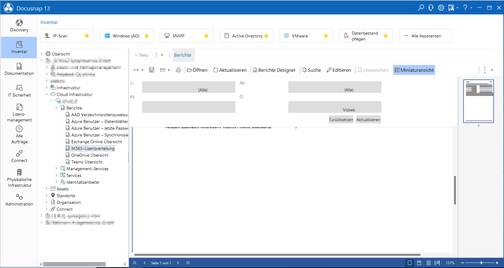 Wenn man die Parameter allerdings so einstellt, dass der Benutzer wählen kann, welche für den Bericht ausgewählt werden sollen, wird der Report im Client sehr klein dargestellt (s. Report.png) und auch die Parameterfelder wirken bzw. sind gequetscht, während sie im Designer richtig angezeigt werden (s. Report Designer.png).
