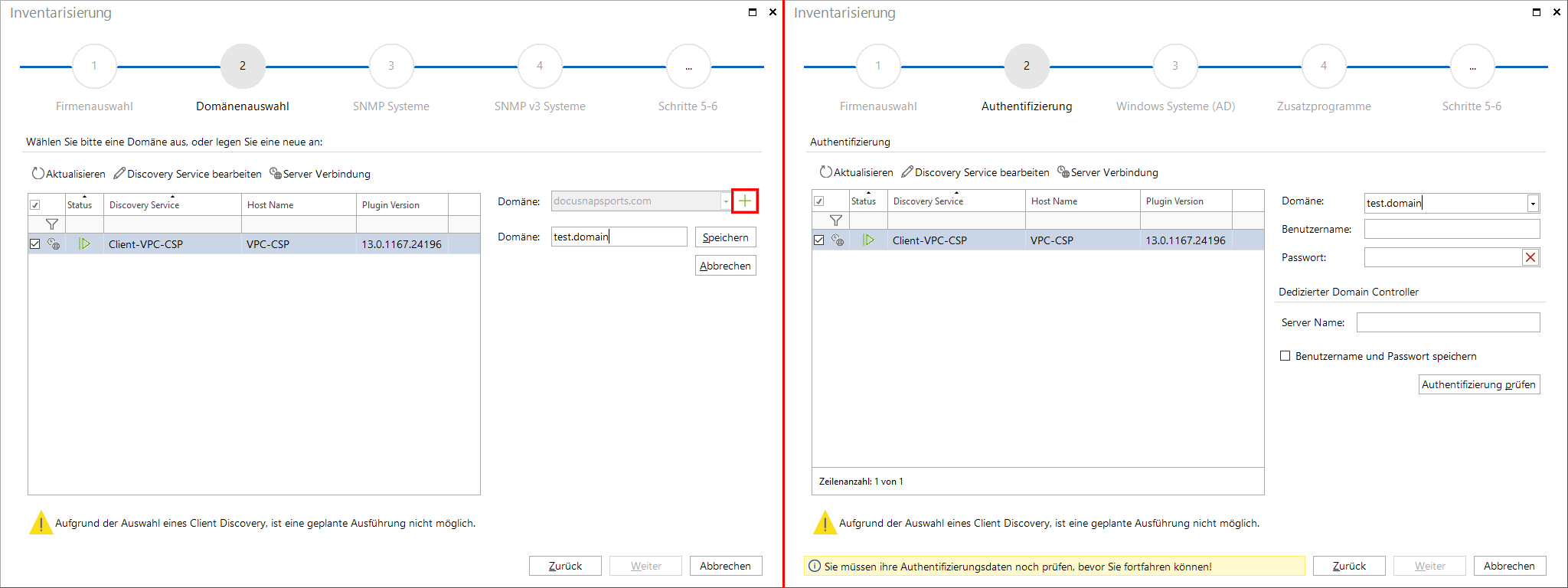 Aktuell können neue Domänen in nicht AD Domänenintegrierten Scans (z.B. SNMP) per [+] Knopf im Assistenten erzeugt werden.