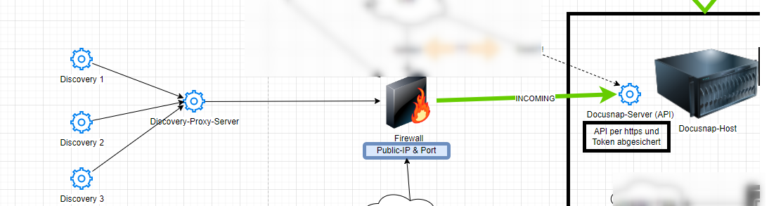 Auch wäre für eine Anbindung einer DMZ die Option eines Datensammler-Proxys sinnvoll um alle Agenten/Datensammler über einen zentralen Datensammler an den Docusnap Server anzubinden. Die Kommunikation wäre dann über einen abgesicherten Port: