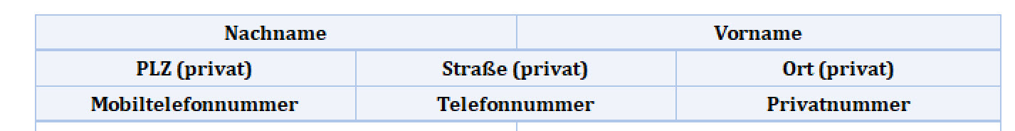 Ich möchte gerne die Feldnamen einer Tabelle (z.B. Kontakte) linksbündig etc. ausrichten.