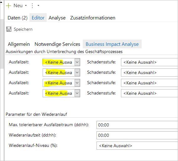 Bei den Prozessen müssen einheitlich immer 4 Ausfallzeiten eingegeben werden. Hier wäre es sinnvoll, diese 4 Werte zentral einmal einzustellen, so dass diese automatisch bei sowohl allen neu erstellten Prozessen angewendet werden als auch bei bestehenden. Die Felder sollten quasi nicht bei den Prozessen existieren, sondern nur zentral. Ein Ändern an zentraler Stelle würde dadurch auch alle Prozesse betreffen.