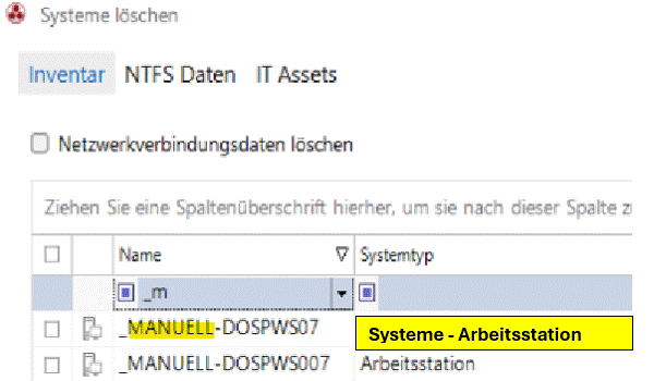 In Spalte „Systemtyp“ Type umdefinieren in „Systeme & „SystemType“ für manuell erfasste Systeme. siehe Abbildung 03..