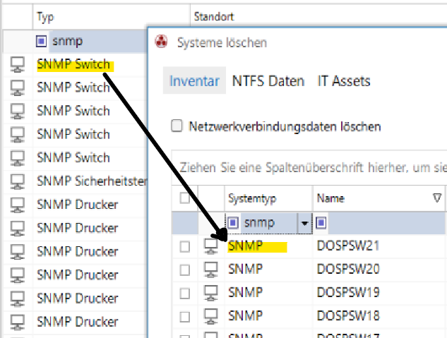 In Spalte „Systemtyp“ Information bei Type „SNMP“ erweitern um SNMP & „SNMP Basis Type“ Beispiel „SNMP Switch“. siehe Abbildung 01..